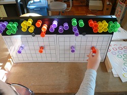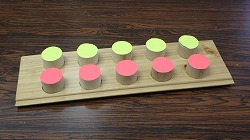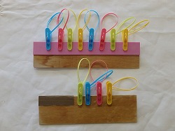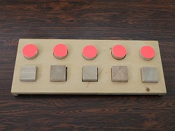 | 関西発達臨床研究所が開発し、「きんぎょ」で実際に活用している教材教具について紹介いたします。主な目的別に整理していますが、発達段階を示すものではありません。発達支援を必要とする子どもたちは、それぞれに発達上の何らかのつまずきを持っています。そのつまずきに対応していくためのツールとして教材を活用していきます。できることが目的ではなく、教材を使った学習活動を通してつまずきへの対応を進めていきます。同じ教材でも違う目的や違う使い方をすることもあるため、特に役に立ちやすいものについては、複数の項目の所で紹介しています。 教材のねらいや作り方、使い方等の詳細情報は、研究所が製作しています教材紹介のデータディスクをご覧ください。 |